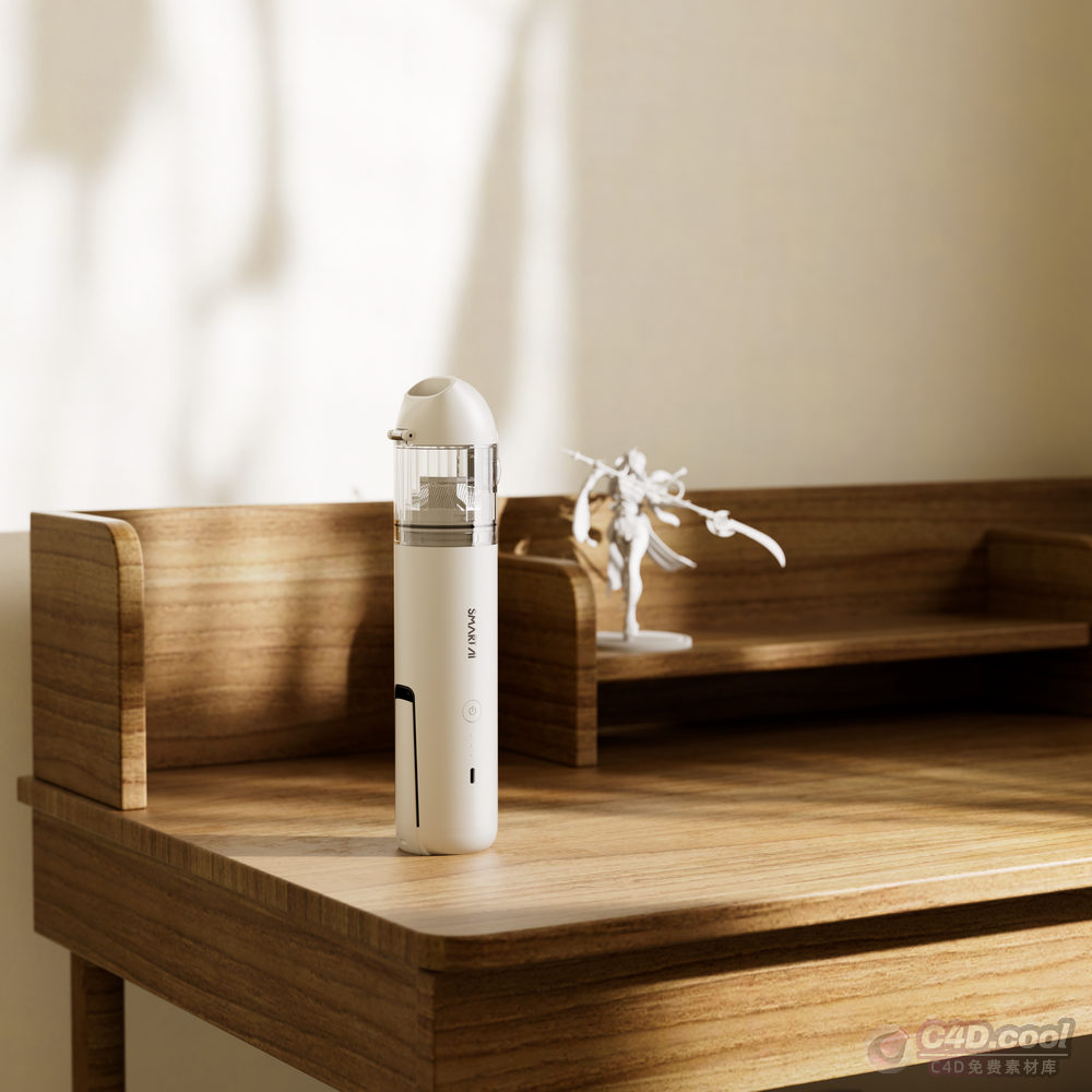 这是运用C4D建模并通过OC渲染的模型工程,呈现出雅致的居家场景。工程包含的物品有:白色设备(从外观推测属于小型家电或电子设备类目,具备特定功能)、木质书桌(纹理自然,提供置物空间)、白色摆件(造型别致,丰富场景层次)、浅色墙面(光影交错,衬托整体场景)。各元素经精细建模与渲染,还原了设备的材质肌理、家具的木质质感及空间的光影层次,适用于家电或电子设备品牌宣传、居家场景设计参考等场景。