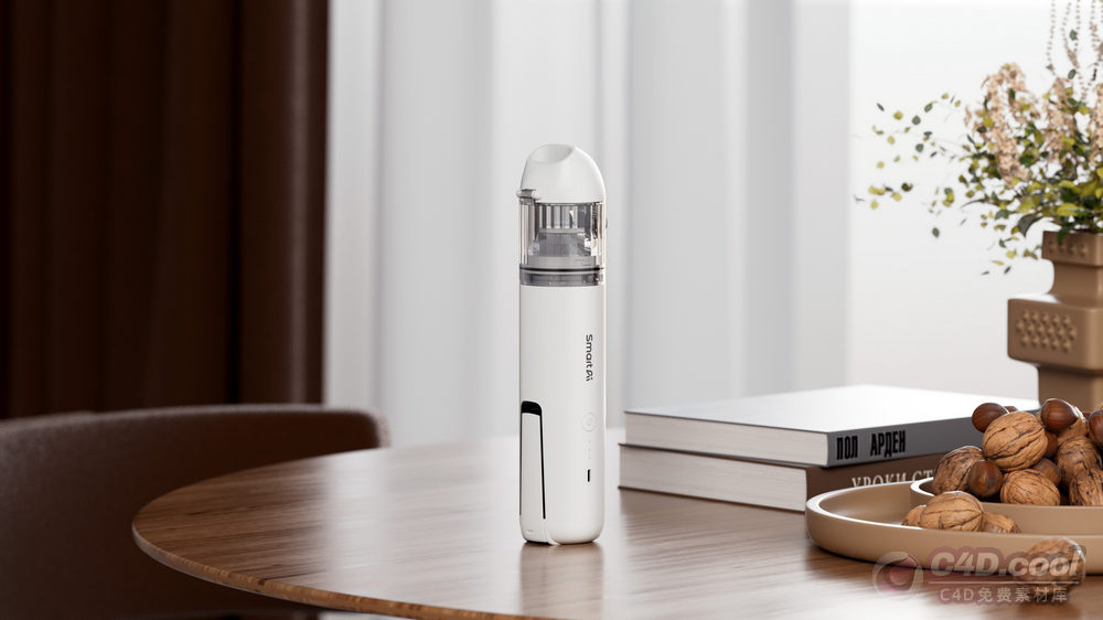 这是运用C4D建模并通过OC渲染的模型工程,呈现出雅致的居家场景。工程包含的物品有:白色设备(从外观推测属于小型家电或电子设备类目,具备特定功能)、木质圆桌(纹理自然,提供置物空间)、棕色座椅(质感舒适,完善场景布局)、书籍(堆叠摆放,丰富场景层次)、坚果与托盘(含核桃,增添生活气息)、花卉装饰(含干花与花盆,提升场景美感)、白色窗帘(色调柔和,衬托整体场景)。各元素经精细建模与渲染,还原了设备的材质肌理、家具的木质与布艺质感及空间的光影层次,适用于家电或电子设备品牌宣传、居家场景设计参考等场景。