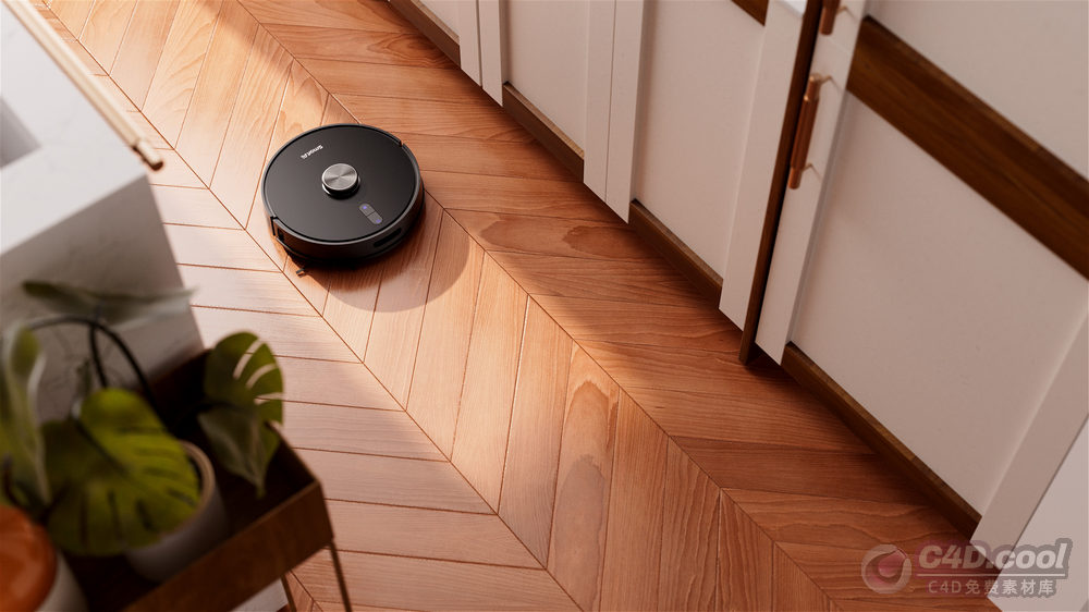 这是运用C4D建模并通过OC渲染的模型工程,呈现出精致的厨房场景。工程包含的物品有:黑色圆形设备(属于家电类目,具备清洁功能)、木质与白色橱柜(设计规整,提供收纳空间)、木质地板(纹理自然,衬托整体场景)、绿植装饰(含盆栽,增添自然气息)、厨房水槽(满足洗涤需求,完善场景布局)。各元素经精细建模与渲染,还原了家电的材质肌理、家具的木质与金属质感及空间的光影层次,适用于家电品牌宣传、厨房场景设计参考等场景。