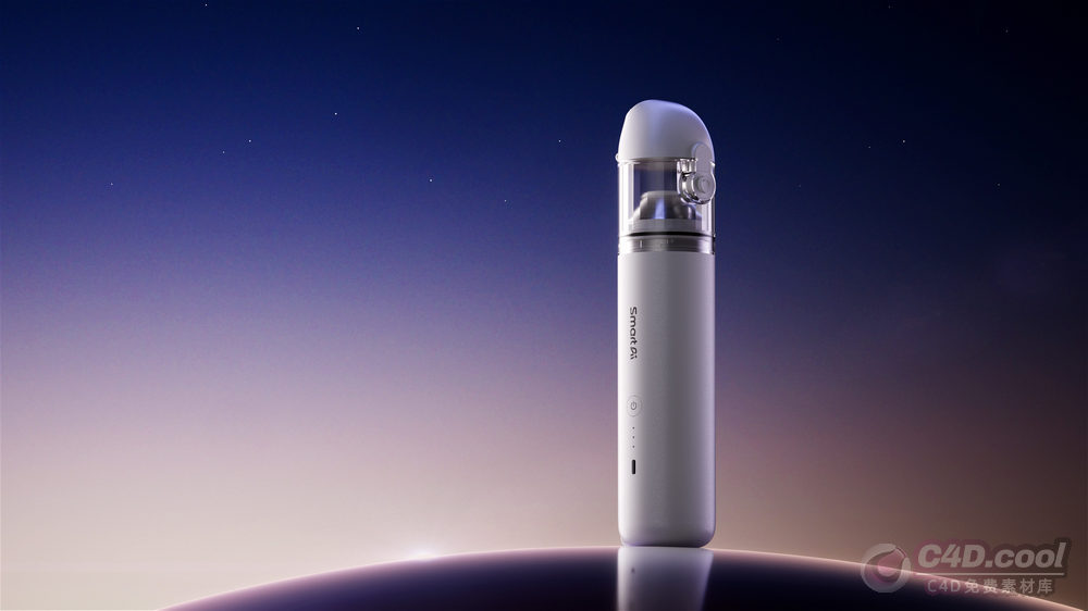 这是运用C4D建模并通过OC渲染的模型工程,呈现出极具科技感的产品展示场景。工程包含的物品有:白色设备(属于家电类目,具备清洁功能)、紫蓝色渐变背景(含星空元素,营造科幻氛围)。各元素经精细建模与渲染,还原了家电的材质肌理、场景的光影层次,突出了设备的简约设计与科技感,适用于家电品牌宣传、清洁设备展示等场景。