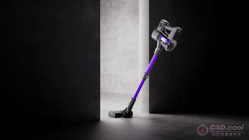 这是运用C4D建模并通过OC渲染的模型工程,呈现出极具质感的产品展示场景。工程包含的物品有:紫黑色设备(属于家电类目,具备清洁功能)、黑灰色墙面与地面(营造简约氛围,衬托产品)。各元素经精细建模与渲染,还原了家电的材质肌理、场景的光影层次,突出了设备的设计感与科技感,适用于家电品牌宣传、清洁设备展示等场景。