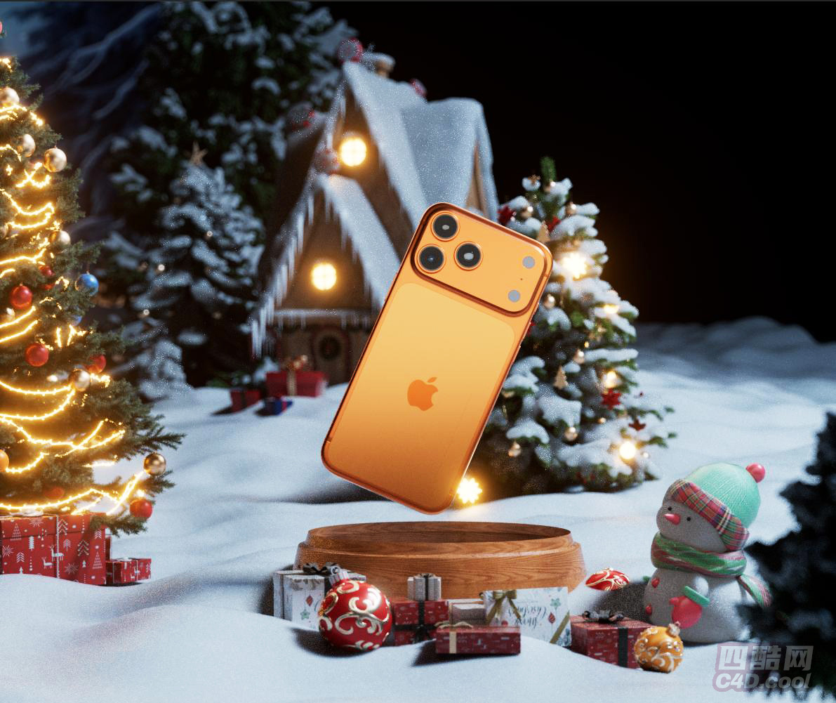 这套 C4D 模型工程运用 OC 渲染技术,构建出充满圣诞氛围的场景。核心物品为一款金色的苹果智能手机(属于通讯工具、智能手机类目),悬浮于木质展示台之上。场景中,有多棵装饰着暖色彩灯与彩色球饰的圣诞树,屋顶覆盖白雪、窗内透出暖光的圣诞木屋,戴着绿帽子和格纹围巾的圣诞雪人,还有多款包装精致的圣诞礼物盒(含红底图案、带丝带等不同样式),以及带有花纹的圣诞装饰球等元素。各模型细节刻画细腻,材质与灯光渲染逼真,完美融合了科技产品与圣诞主题装饰的视觉效果,能为相关视觉创作提供丰富素材。