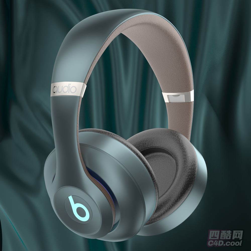四酷网OC工程头戴式蓝牙耳机皮质耳罩C4D模型工程