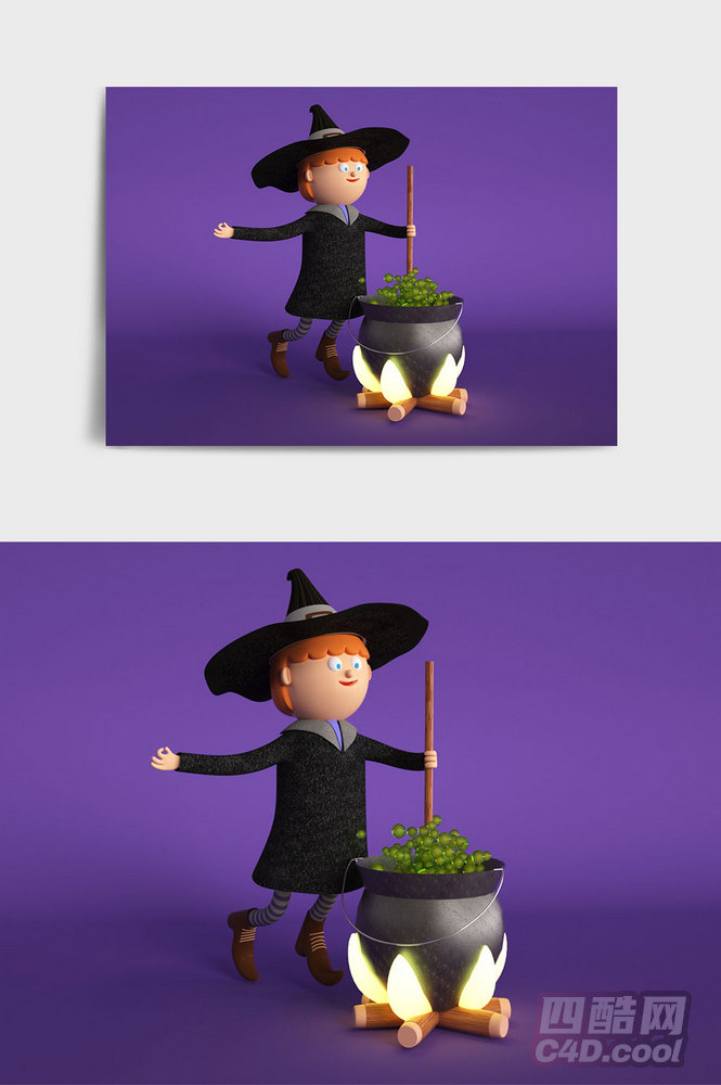 四酷网-万圣节-个性卡通风格万圣节魔法师C4D人物元素