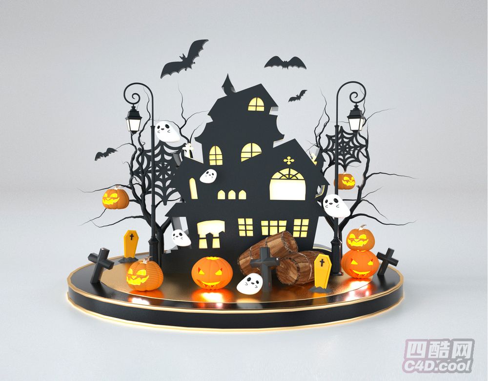 四酷网-万圣节-奇妙梦幻创意万圣节C4D美陈模型