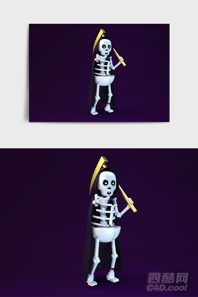四酷网-万圣节-C4D白色卡通风格万圣节骷髅主题IP形象
