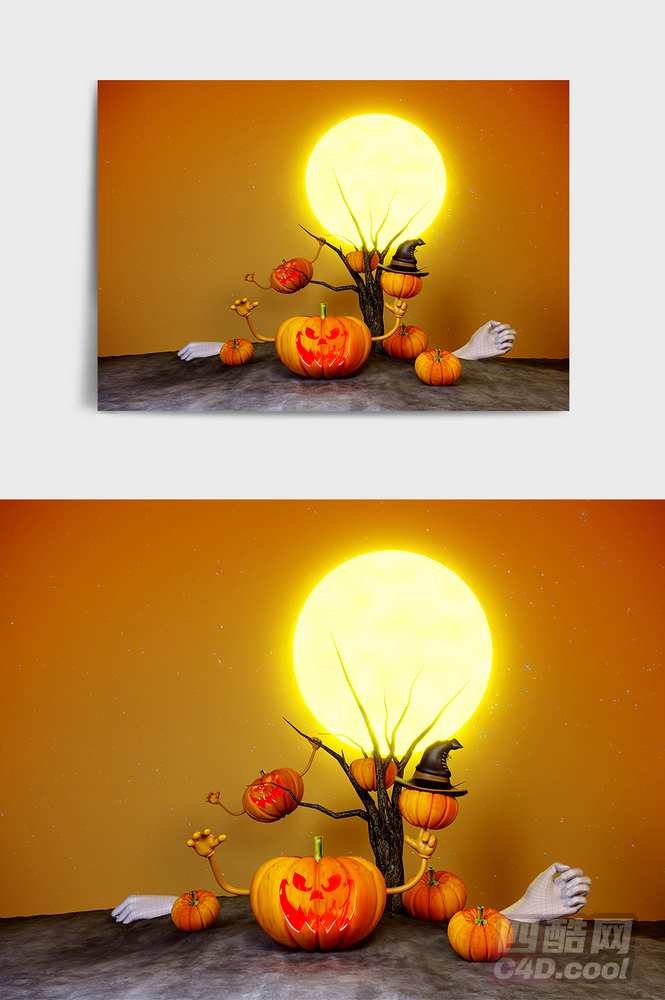 四酷网-万圣节-C4D万圣节恐怖南瓜创意模型
