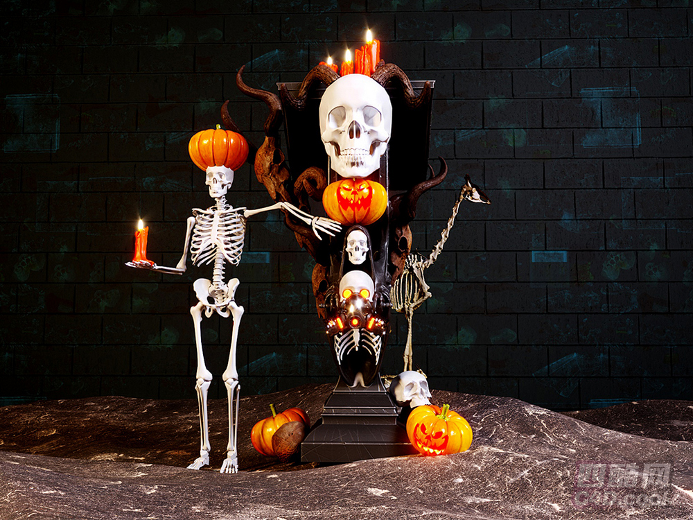 四酷网-万圣节-万圣节恐怖骷髅南瓜头创意模型