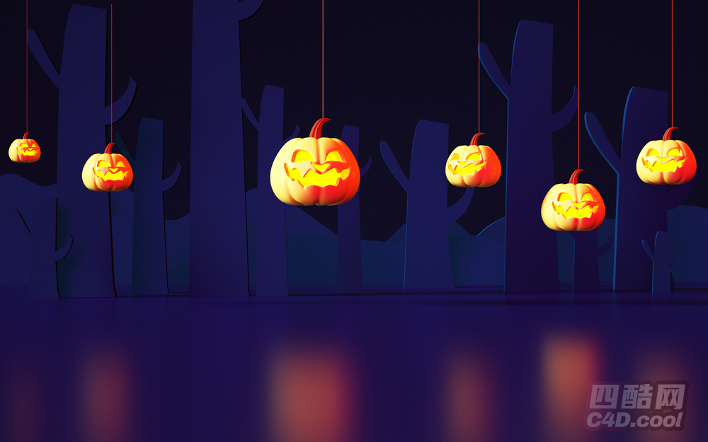 四酷网-万圣节-个性万圣节南瓜马车模型场景