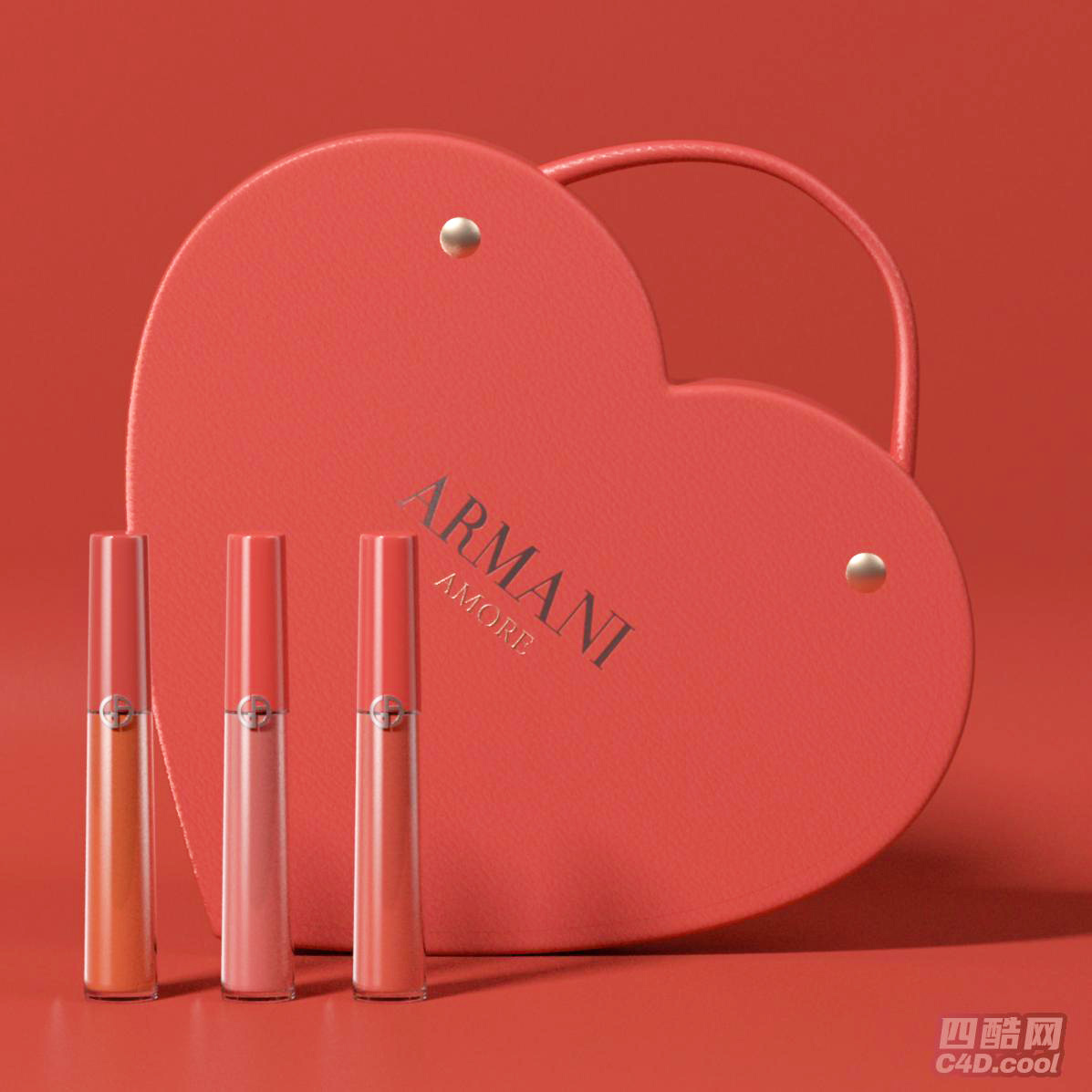 这套C4D模型工程采用OC渲染技术,聚焦化妆品(彩妆类)类目,精准还原美妆产品质感。模型包含阿玛尼品牌的彩妆礼盒套装:一款爱心形状的高定手包,表面带有“ARMANIAMORE”标识,皮质纹理与金属铆钉光泽逼真;手包前摆放三支阿玛尼红管唇釉,透明瓶身搭配金属品牌标识,瓶内唇釉液体色彩通透且呈现不同色调。模型对唇釉瓶身通透感、手包皮质与金属部件质感刻画细腻,可用于美妆品牌宣传、彩妆广告设计等,能通过“C4D模型”“OC渲染”“阿玛尼唇釉”“爱心手包”“彩妆礼盒”口红