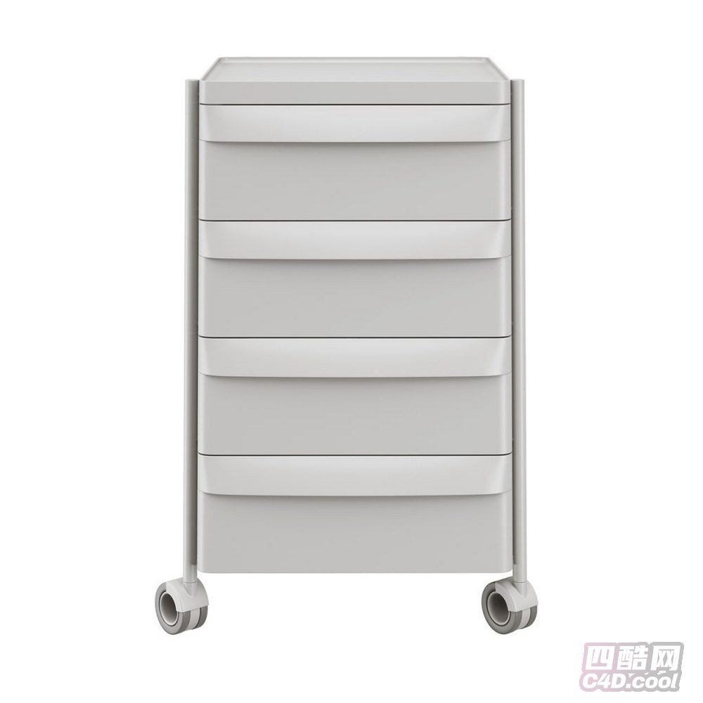 3D建模、带轮办公抽屉柜、办公家具、多层抽屉、移动滑轮、简洁设计、沉稳蓝色、收纳储物、台面置物、实用美观、现代风格、空间利用、灵活移动、办公收纳、工业设计