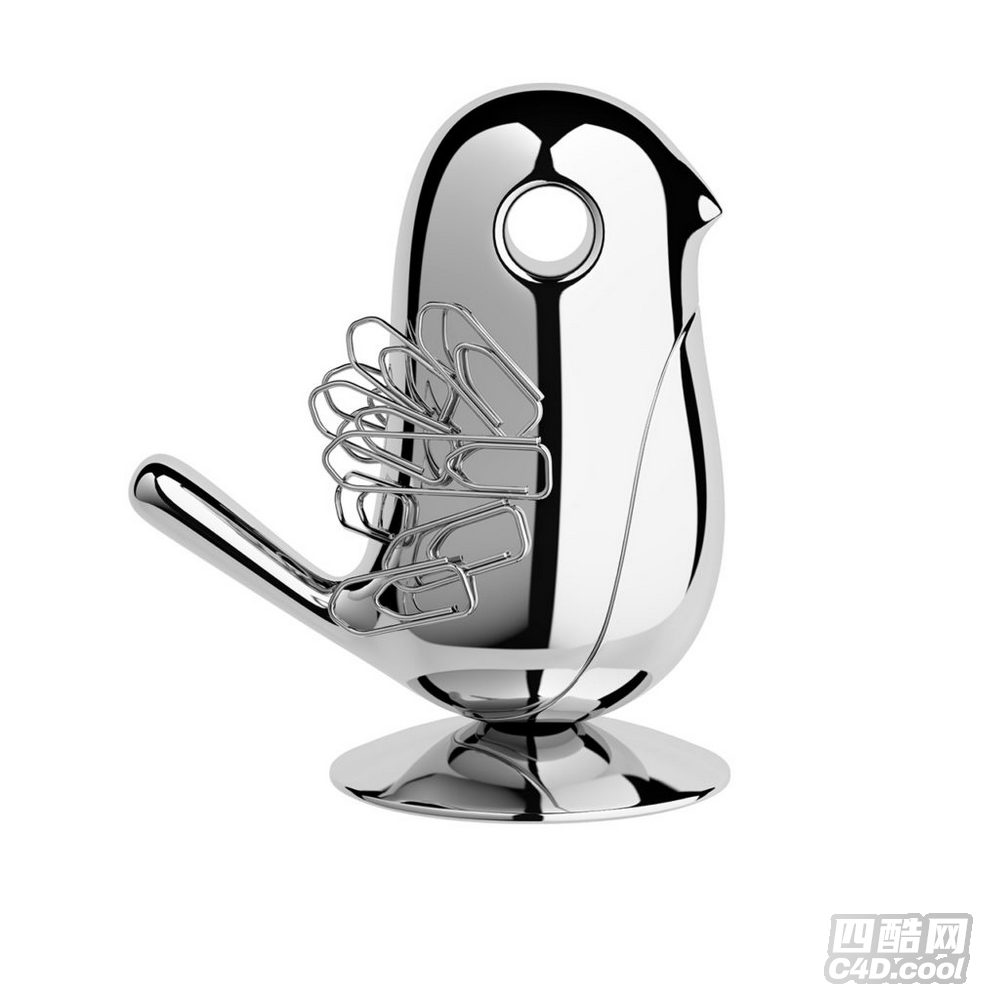 3D建模、芯片磁性回形针夹、小鸟造型、金属质感、镀铬工艺、磁性收纳、回形针整理、办公文具、创意设计、实用摆件、工业设计、桌面收纳、趣味造型、功能文具、精致质感