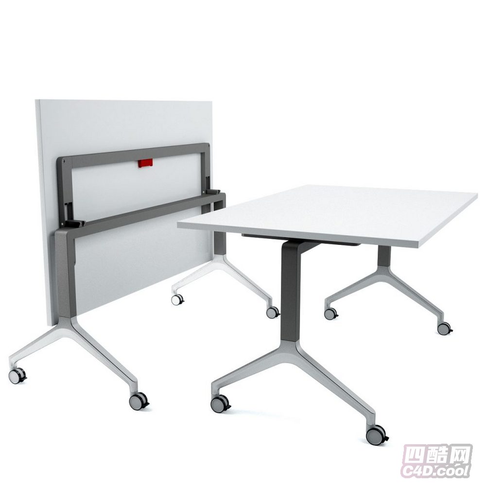 3D 建模、折叠桌、办公家具、可移动、带轮设计、灰白配色、折叠结构、现代风格、多功能桌、空间利用、工业设计、灵活办公、会议桌、收纳便捷、实用家具