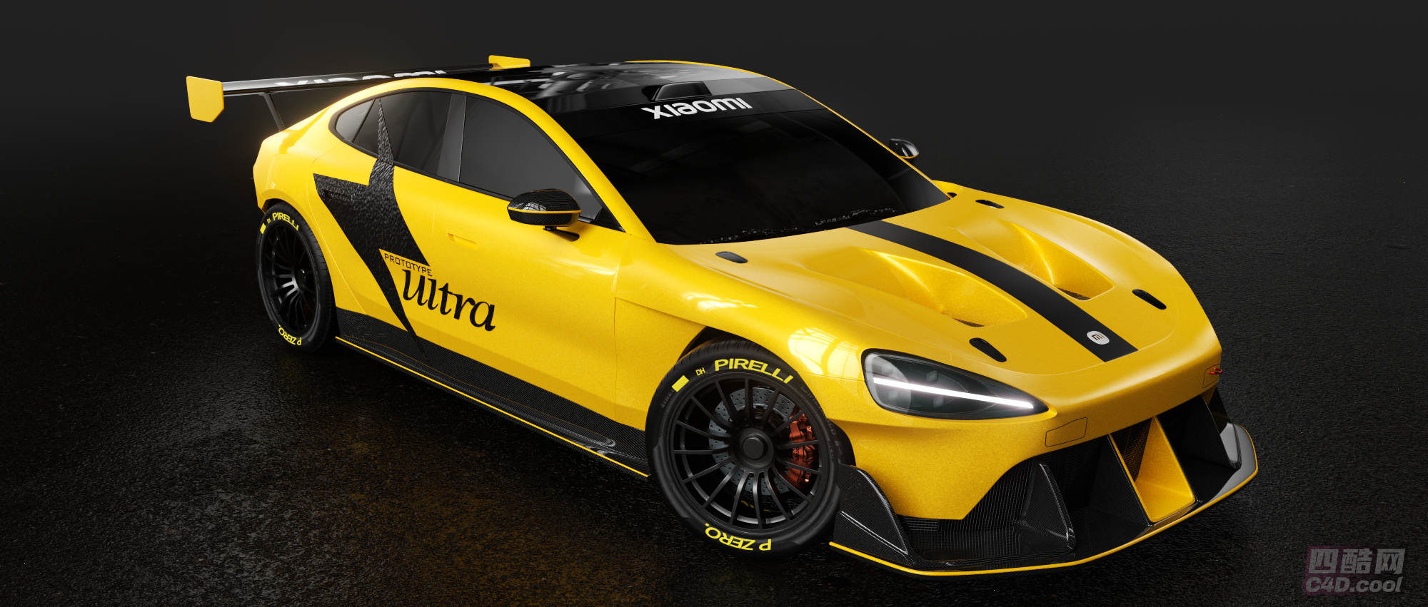 这套 C4D 模型工程采用 OC 渲染技术,聚焦 ** 交通工具(汽车)** 类目,精准呈现了小米 SU7 Ultra 赛车的细节。该赛车为黄黑配色的轿跑造型,车身带有 “PROTOTYPE Ultra” 标识与黑色星形装饰,车顶标注 “XIAOMI” 字样;配备黑色多辐式轮毂,轮胎印有 “PIRELLI P ZERO” 品牌标识,还带有大型尾翼以增强运动性能。场景中是带有细微反光的黑色地面,背景为深色环境,通过渲染还原出赛车的金属漆面质感、轮胎的橡胶纹理以及车身装饰的细节层次。此模型可用于汽车产品展示、赛车广告设计、汽车类视觉创作等场景,能通过 “C4D 模型”“OC 渲染”“小米 SU7 Ultra”“赛车”“轿跑”“黄黑赛车”“PIRELLI 轮胎” 等关键词检索,为相关领域提供高品质 3D 素材支持。