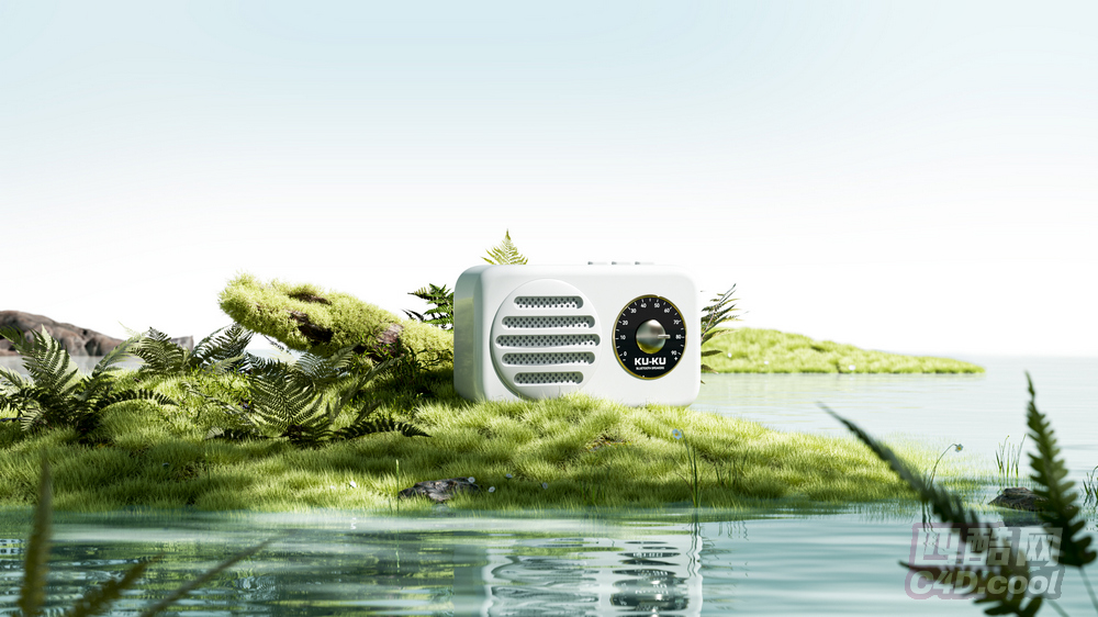 这是一个通过C4D建模并采用Octane(OC)渲染的音频设备模型工程。该物品属于音频设备类目,具体为蓝牙音箱(Bluetoothspeaker)。模型中包含KU-KU品牌复古风格蓝牙音箱主体,其具有白色机身、格栅式扬声器开孔、带刻度的调节旋钮;场景部分涵盖绿色草地、蕨类植物、苔藓覆盖的岩石、水域景观以及天空环境。整套模型工程在细节和质感呈现上颇为出色,音箱的材质质感、格栅的孔隙细节,以及场景中草地的纹理、植物的形态、水域的反光效果等,都通过C4D建模与OC渲染得到了逼真还原,为蓝牙音箱产品展示打造了富有自然气息的高品质视觉方案。