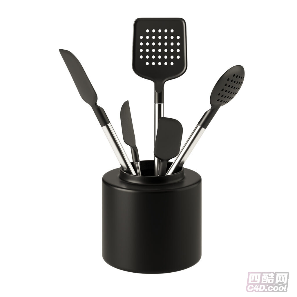 四酷网-Crate & Barrel黑色硅胶厨具 锅铲 刀具 勺子 3D模型
