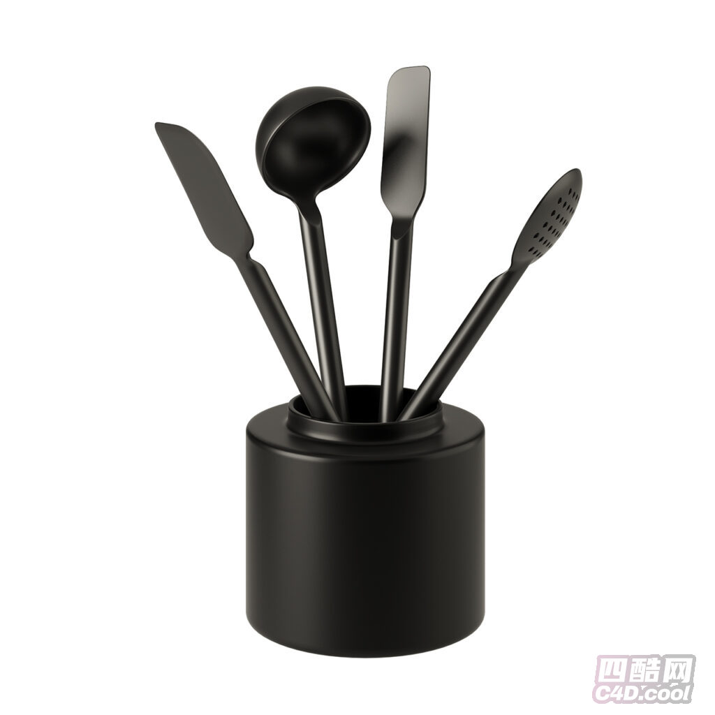 四酷网-Crate & Barrel黑色硅胶厨具 锅铲 刀具 勺子 3D模型