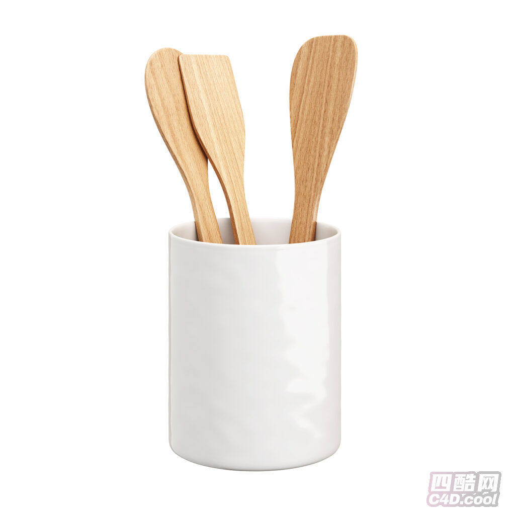 四酷网-Crate & Barrel Marin 餐具架木质锅铲 3D模型