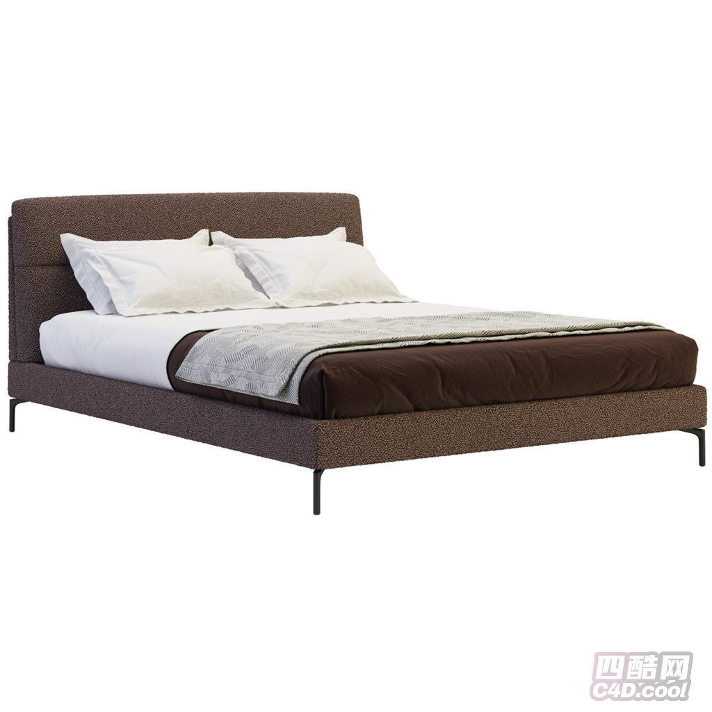 四酷网灰色软包床书桌与儿童卧室玩具装饰场景模型工程