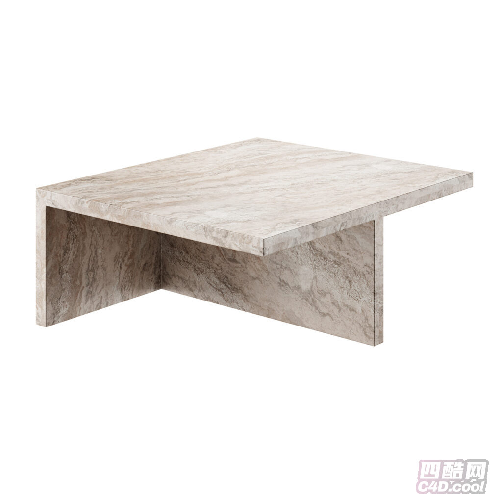 四酷网米白色沙发茶几与客厅边几脚凳场景模型工程