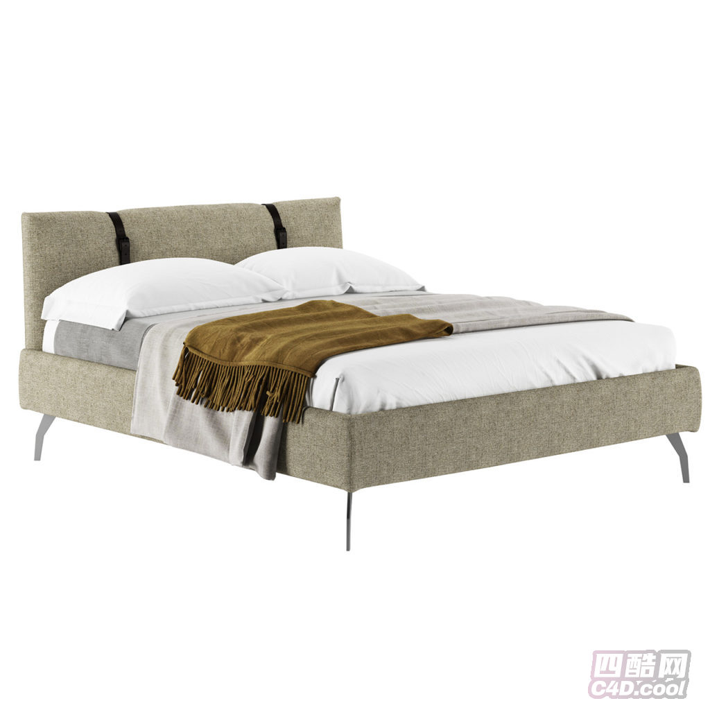 四酷网双人床,床头柜,衣柜及沙发的现代卧室模型