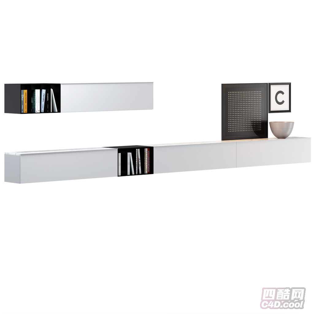 四酷网-带书架的悬挂储物单元 家具3D模型 by Caccaro