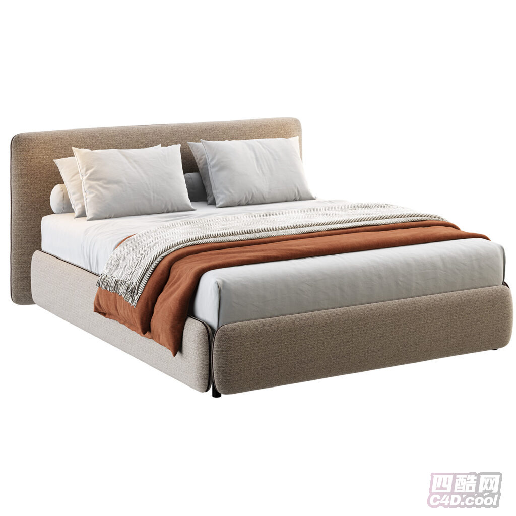 四酷网-Zip双床头板床 双人床 家具3D模型 由Calligaris设计