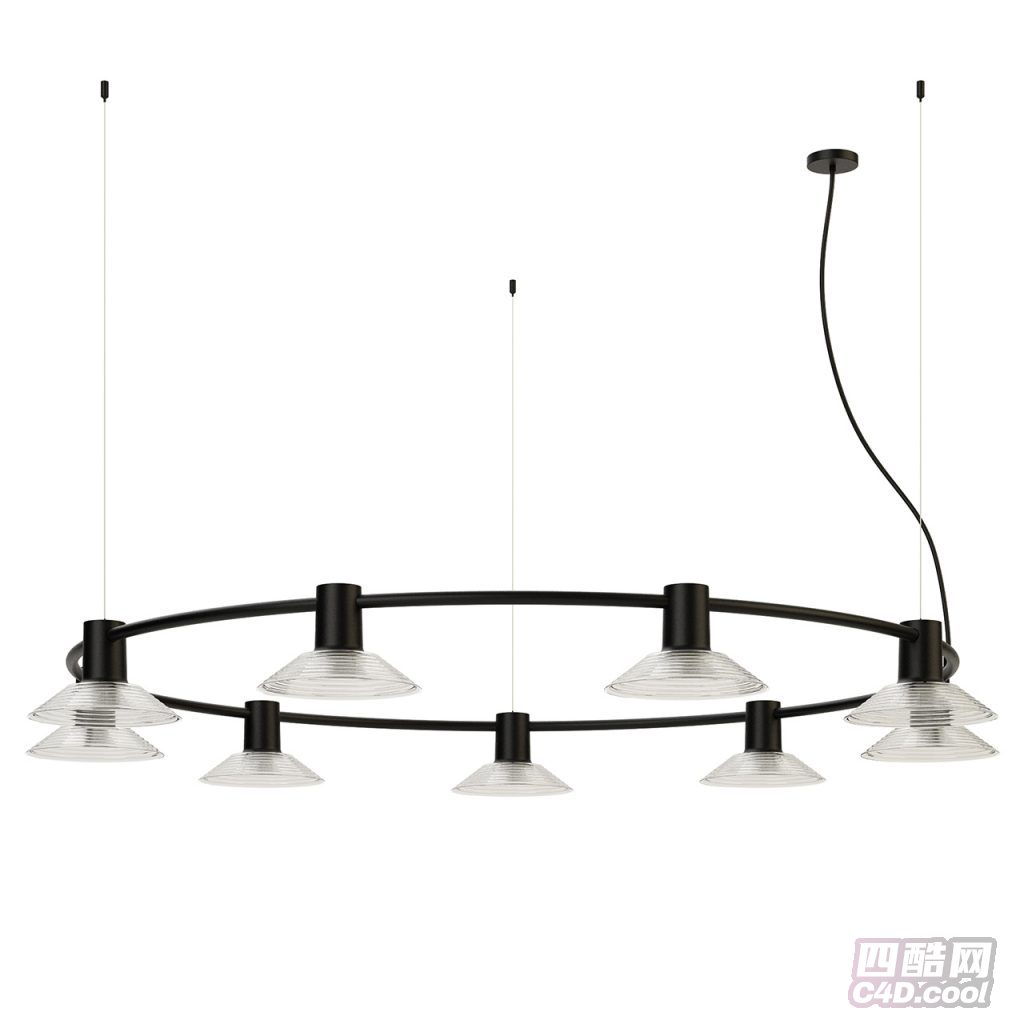 四酷网-组合轨道圆形灯 灯具3D模型 大型金属灯 灯具3D模型罩 由零设计