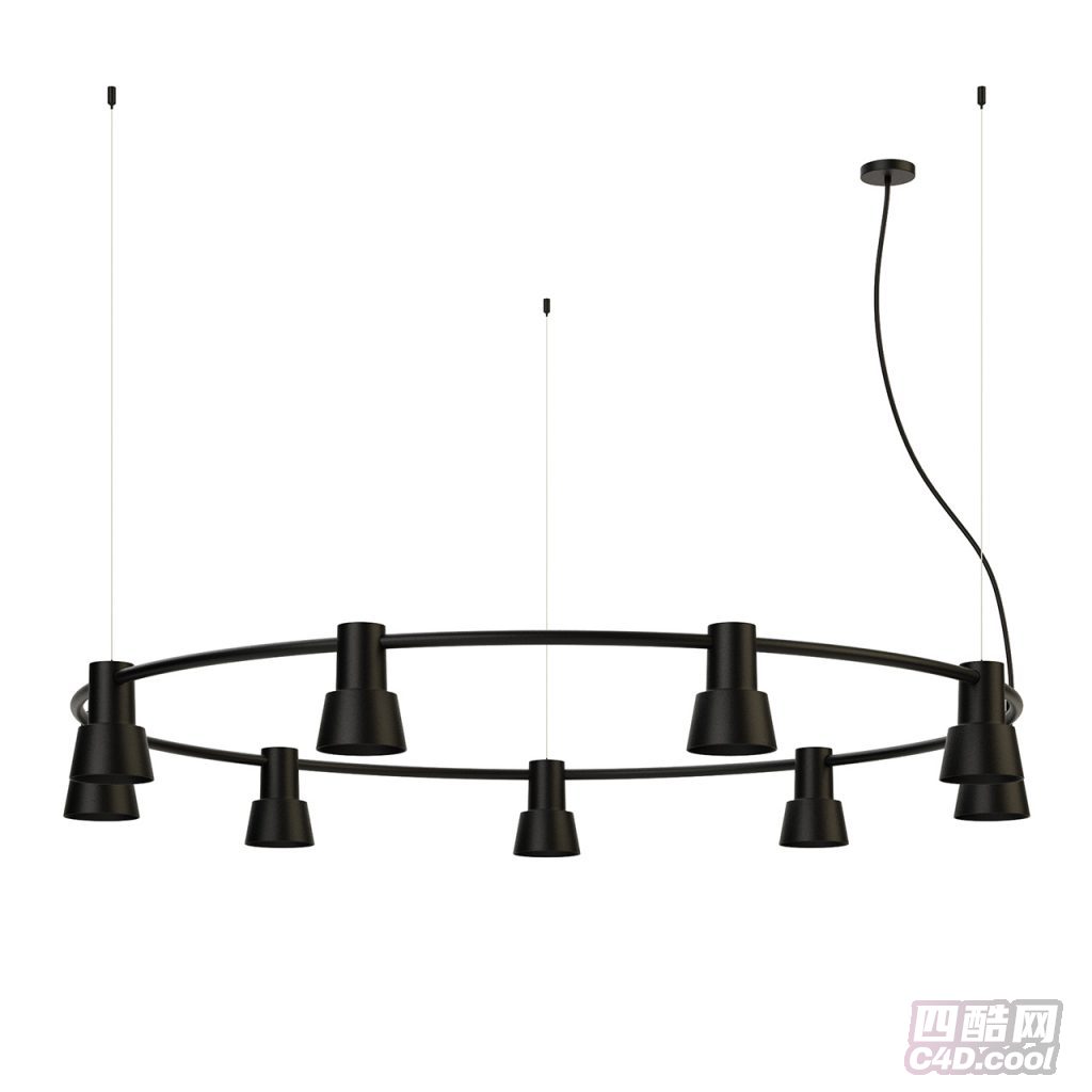 四酷网-组合轨道圆形灯 灯具3D模型 小型金属灯 灯具3D模型罩 由零设计