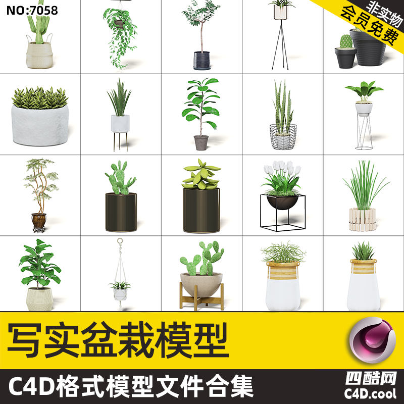 这个 C4D 模型是写实盆栽模型合集,包含的物品(对应模型)有: