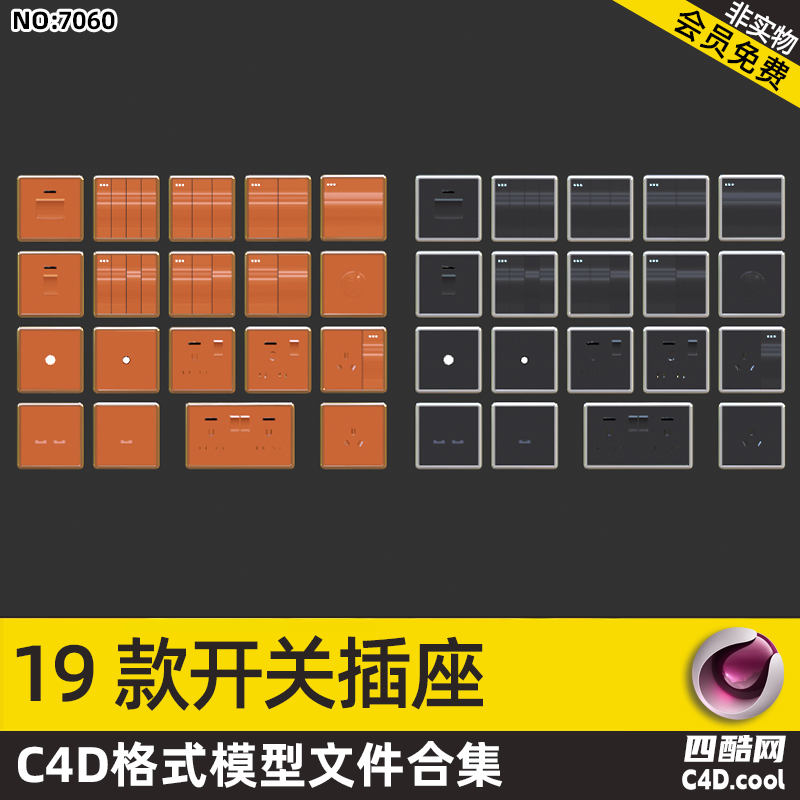 四酷网-19款开关插座C4D模型