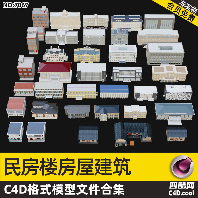 这个 C4D 模型是民房楼房屋建筑合集,包含的物品(对应模型)有: