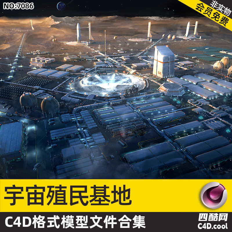 这个 C4D 模型是宇宙殖民基地模型,包含的物品(对应模型)有: