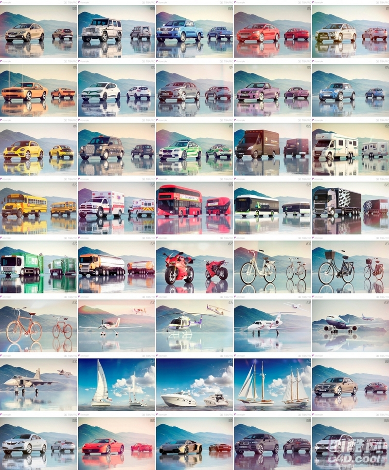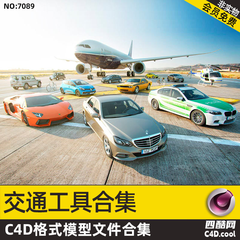 这个 C4D 模型是交通工具合集,包含的物品(对应模型)有: