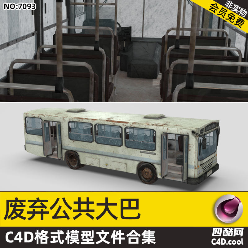 这个 C4D 模型是废弃公共大巴模型,包含的物品(对应模型)有:
