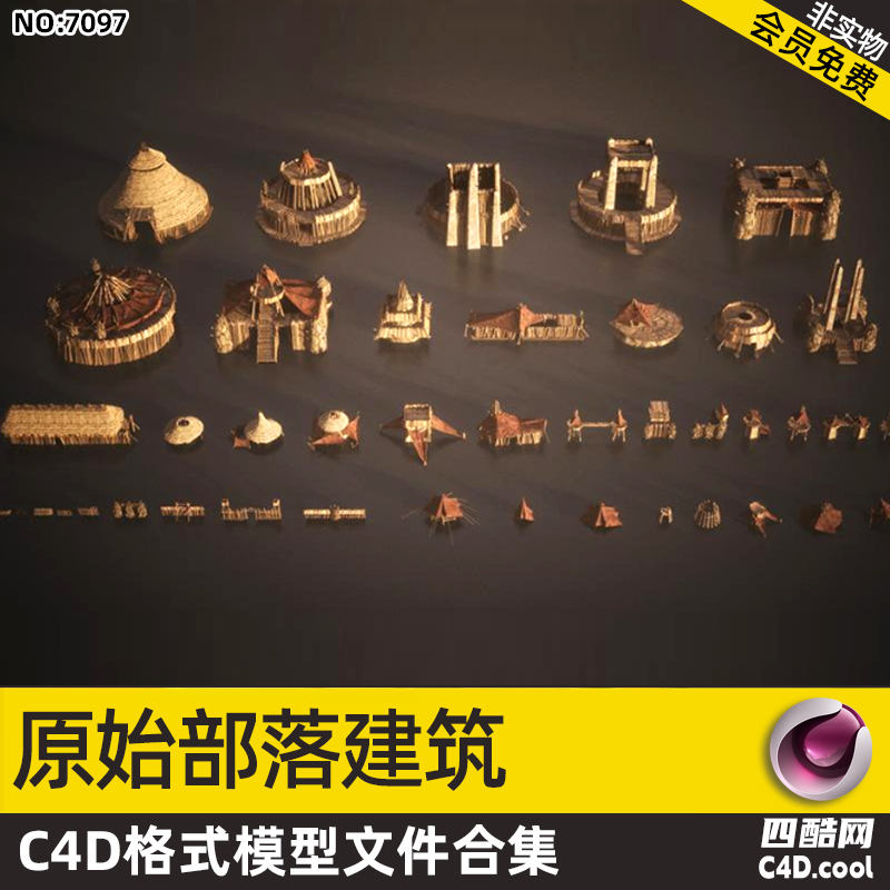 这个 C4D 模型是原始部落建筑合集,包含的物品关键字(对应模型)有: