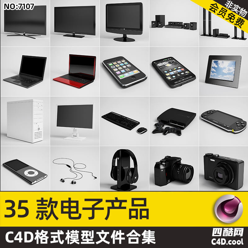 这个 C4D 模型是35 款电子产品合集,包含的物品(对应模型)有: