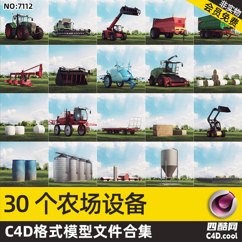 这个 C4D 模型是农业设备与农用设施合集,包含的物品(对应模型)有: