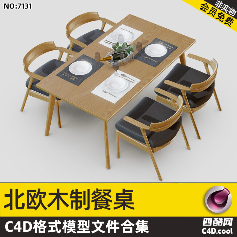 这个 C4D 模型是北欧木制餐桌组合模型,包含的物品(对应模型)有:
