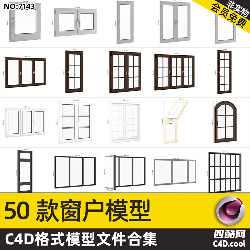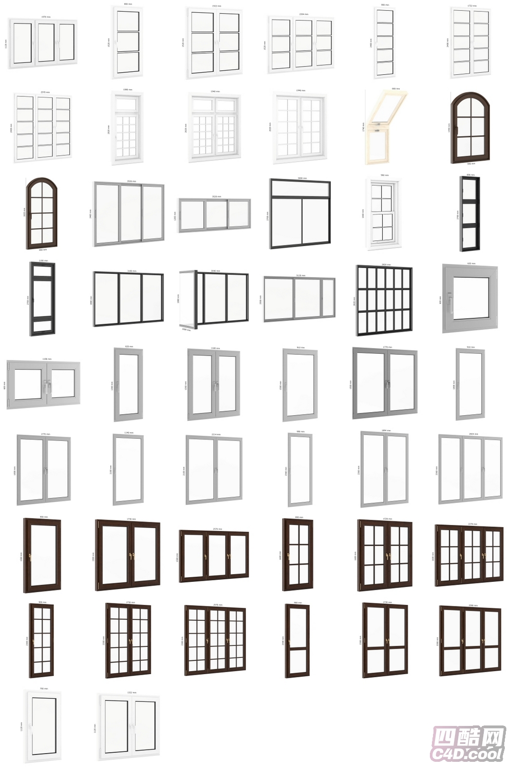 这个 C4D 模型是门窗模型合集,包含的物品(对应模型)有:
