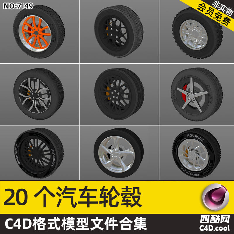四酷-20个汽车轮毂C4D模型