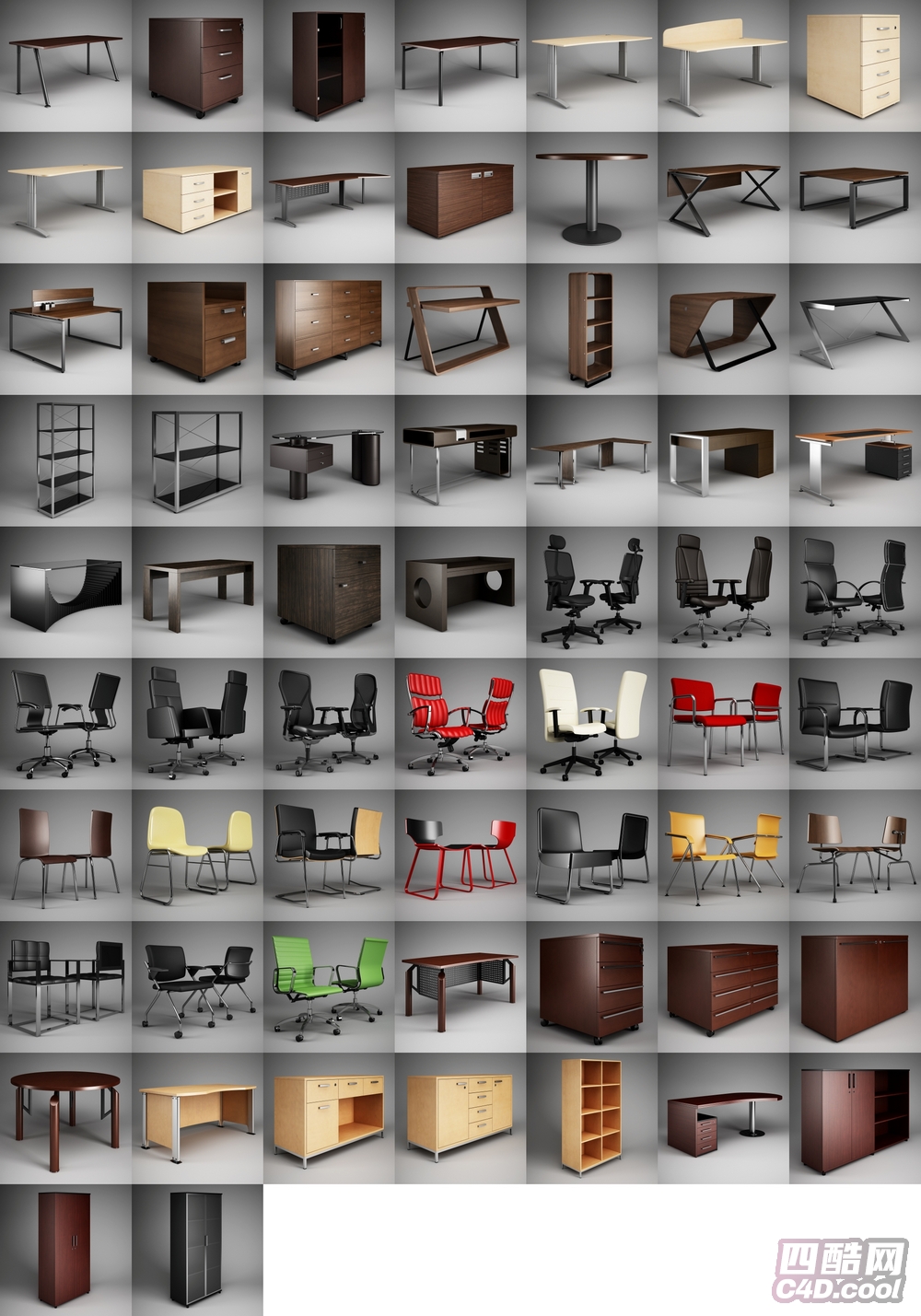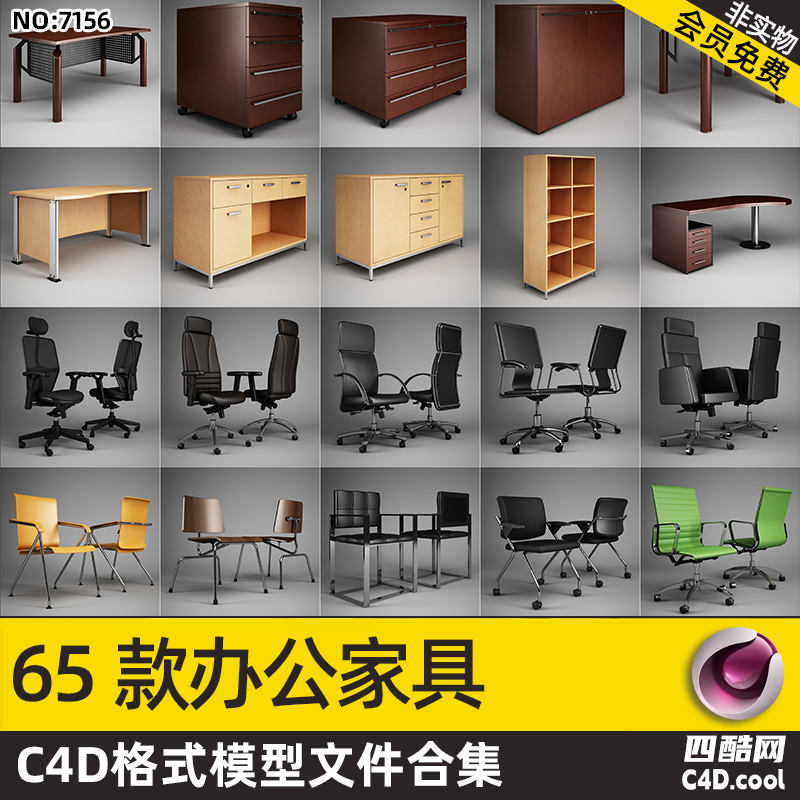 四酷-65款办公家具C4D模型