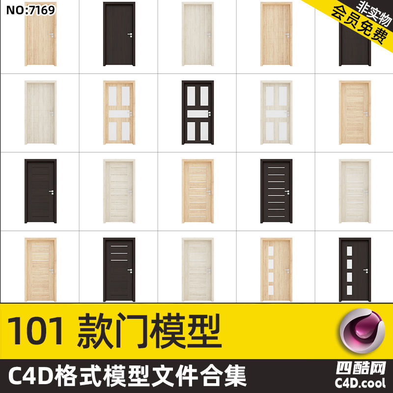 这个 C4D 模型是室内门窗模型合集,包含的物品(对应模型)有:
