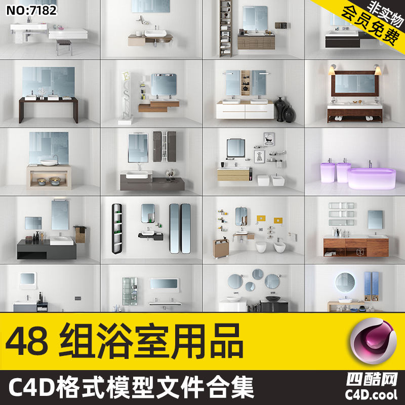 这个 C4D 模型是现代卫浴空间组件合集,包含的物品(对应模型)有: