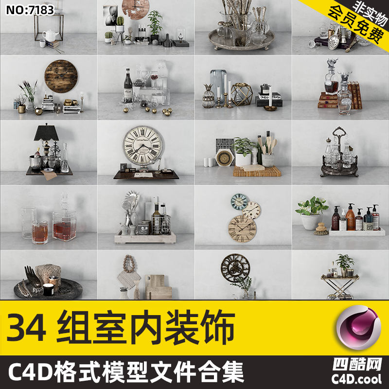 这个 C4D 模型是现代简约家居装饰场景合集,包含的物品(对应模型)有: