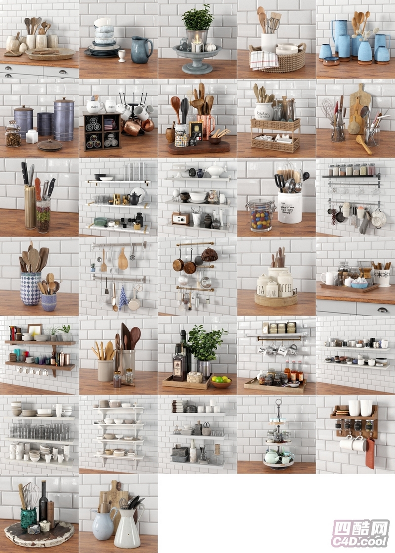 个 C4D 模型是厨房台面收纳场景合集,包含的物品(对应模型)有: