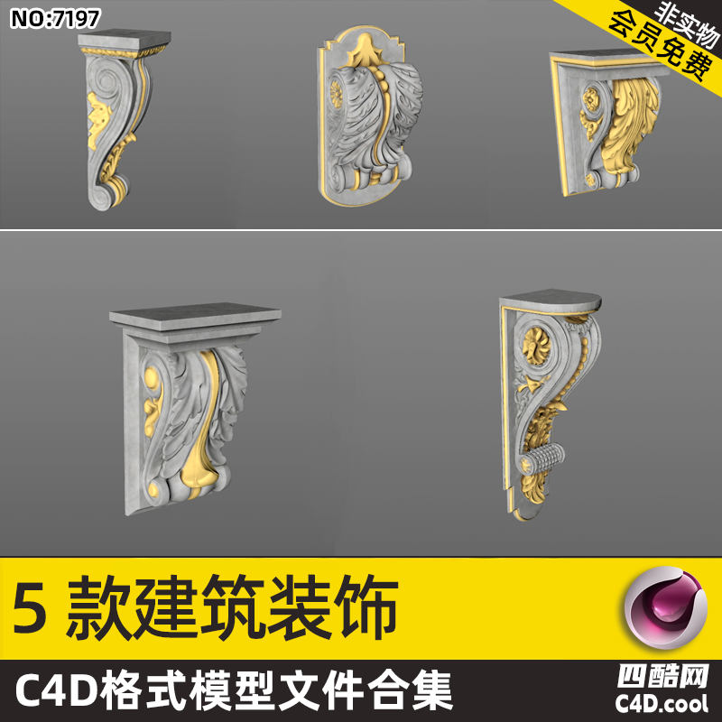 这个 C4D 模型是欧式雕花建筑装饰托架合集,包含的物品(对应模型)有:多款带雕花装饰的建筑托架(含浮雕、鎏金装饰款式)。