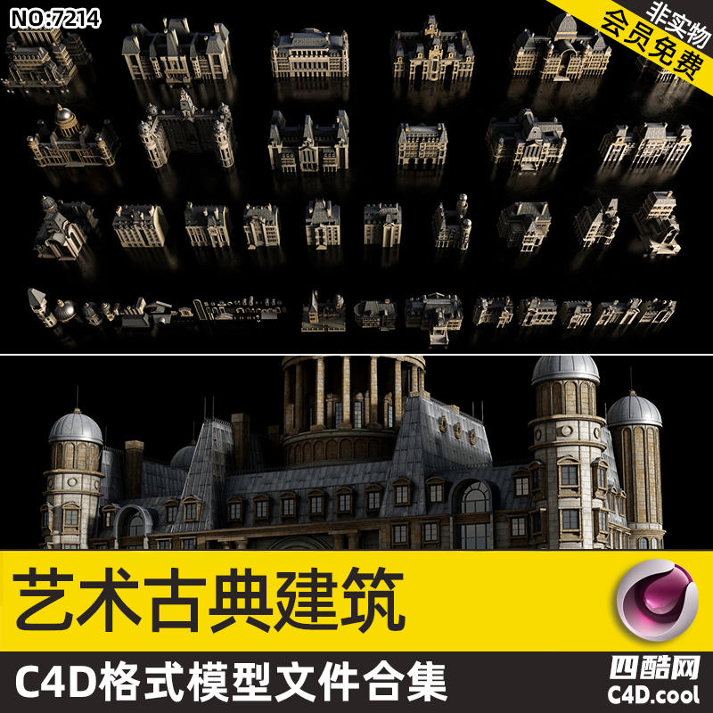 这是艺术古典风格建筑 C4D 模型合集,包含的物品(对应模型)有: