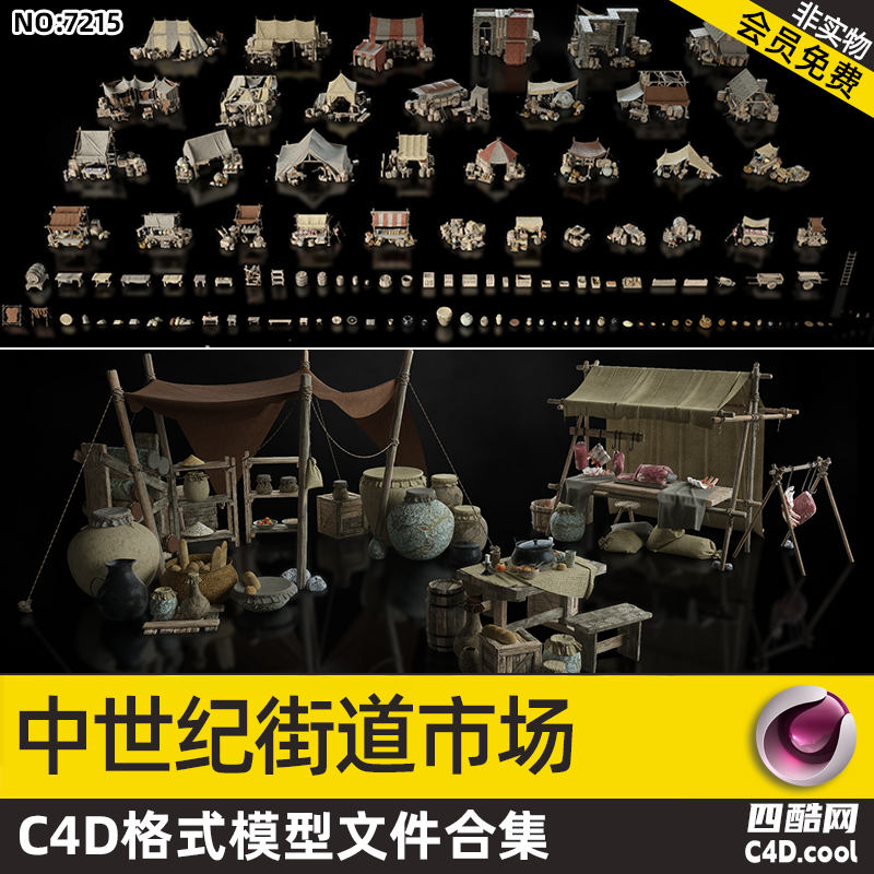 这是中世纪街道市场风格 C4D 模型合集,包含的物品(对应模型)有: