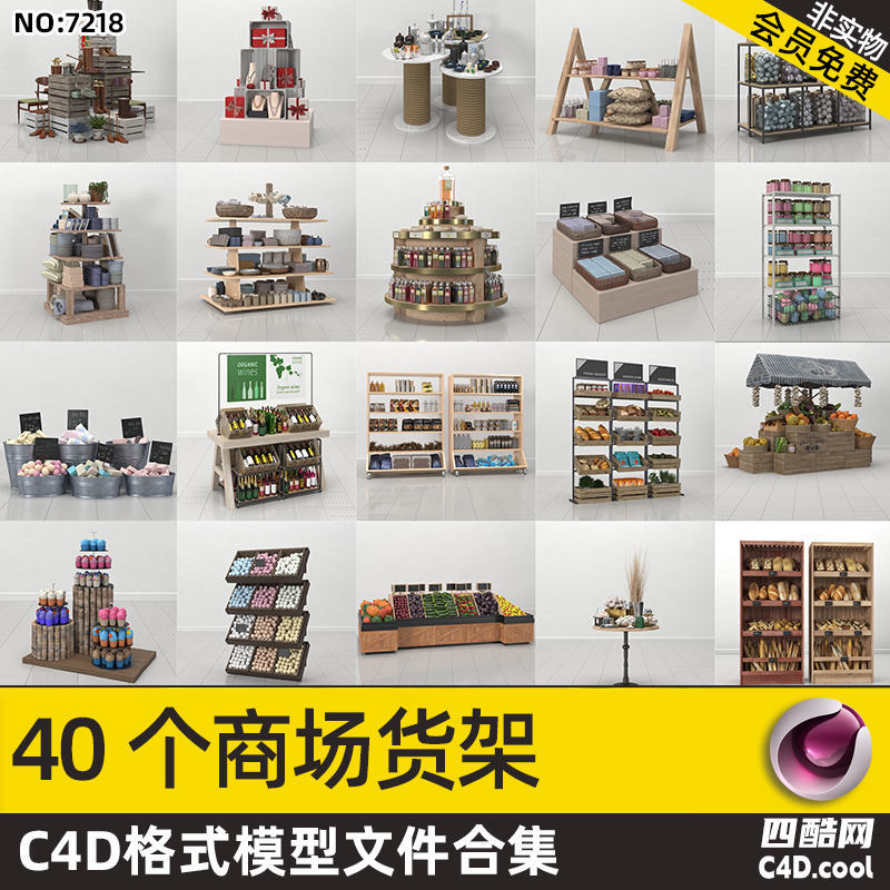 这是零售店铺陈列道具 C4D 模型合集,包含的物品(对应模型)有: